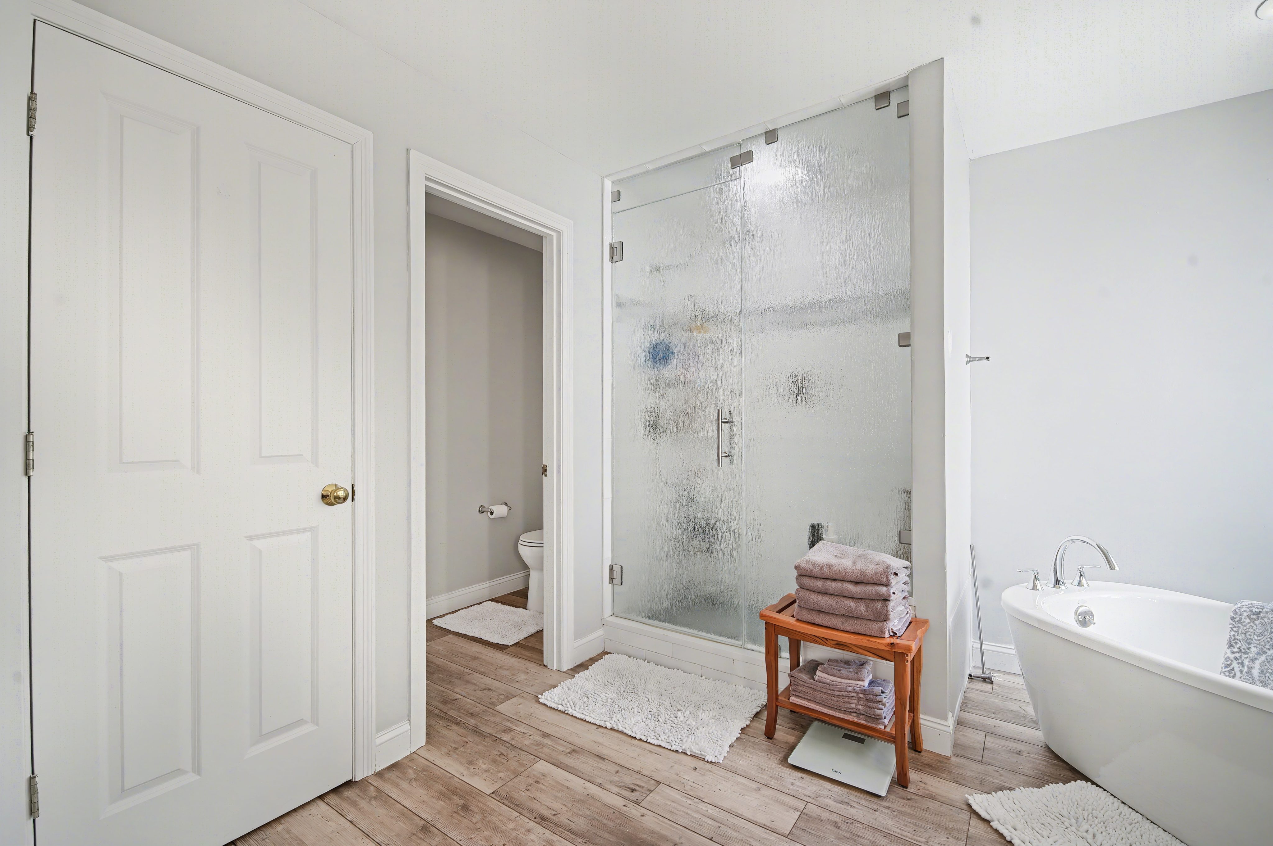 main bath with steam shower and soaking tub