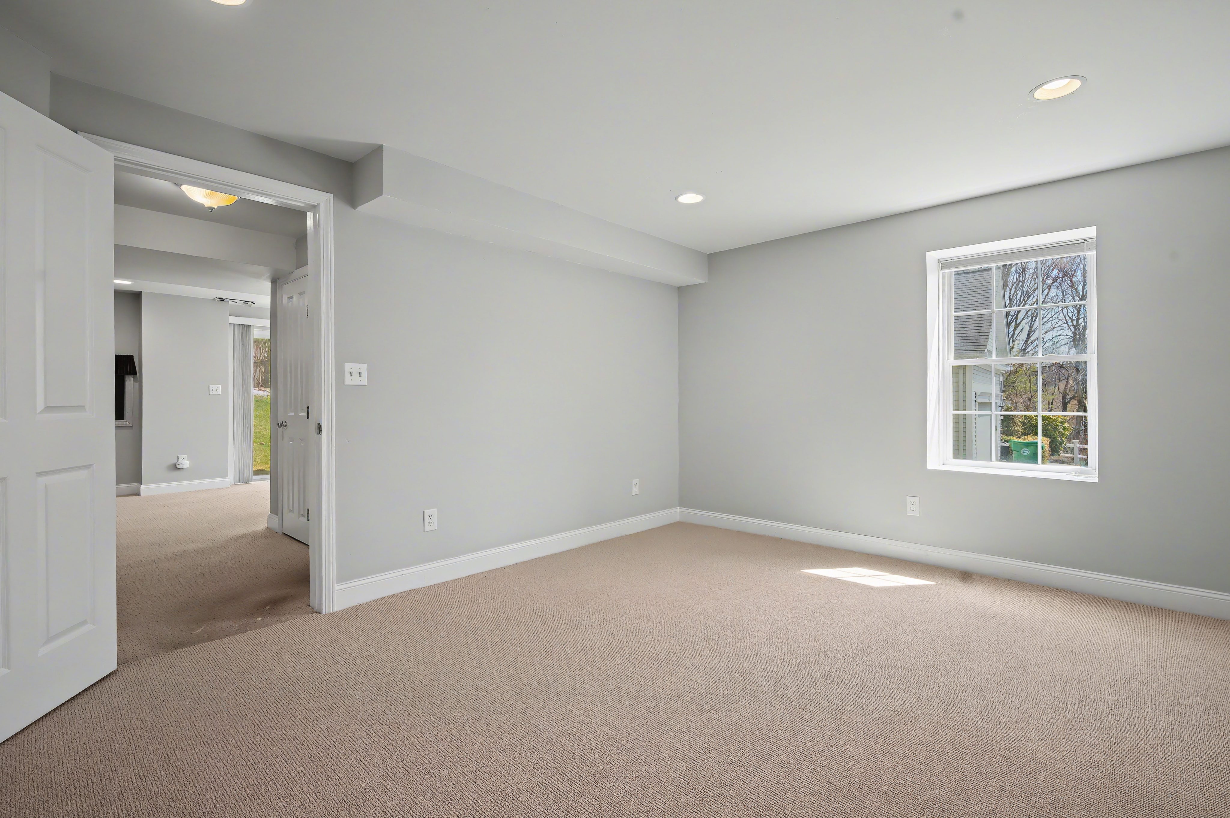 bedroom, full bath and living area in walkout lower level